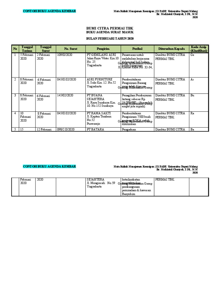 Contoh Format Buku Agenda Tunggal Berpasangan Dan Kembar Berita Kabar Indonesia